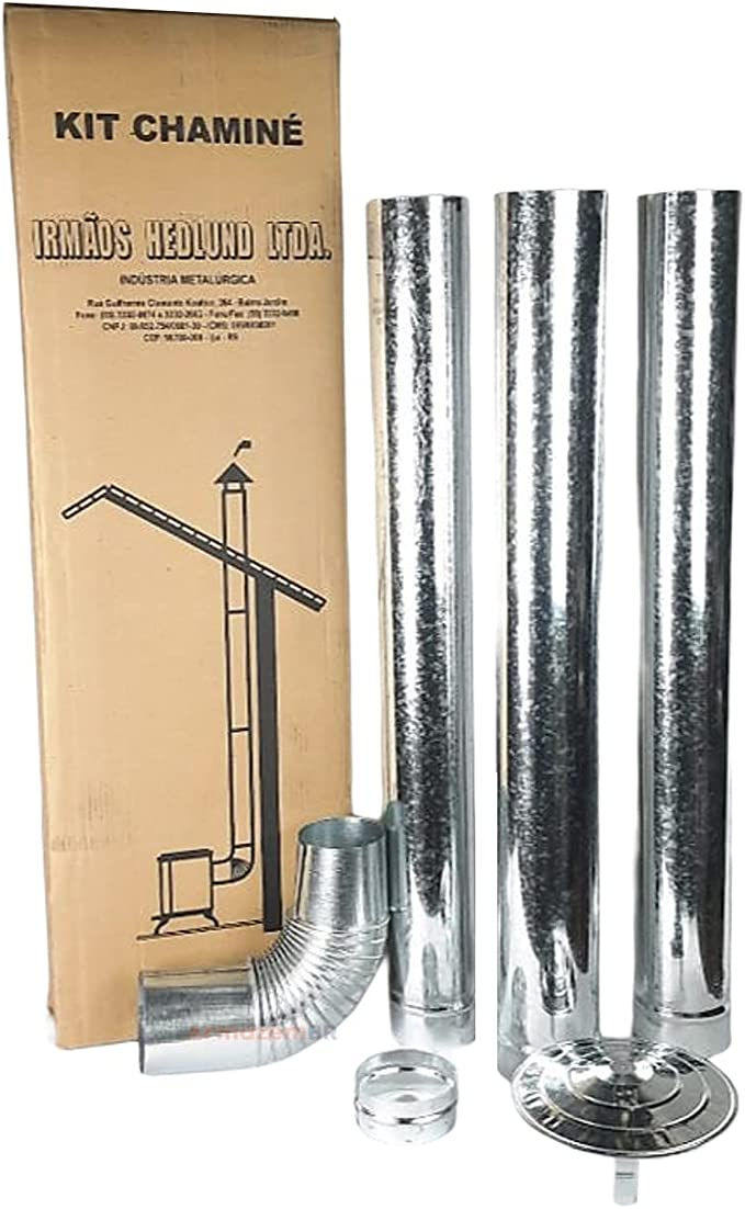 Kit Chaminé Em Aço Galvanizado Com 115mm Para Casa Fogão a Lenha Lareira